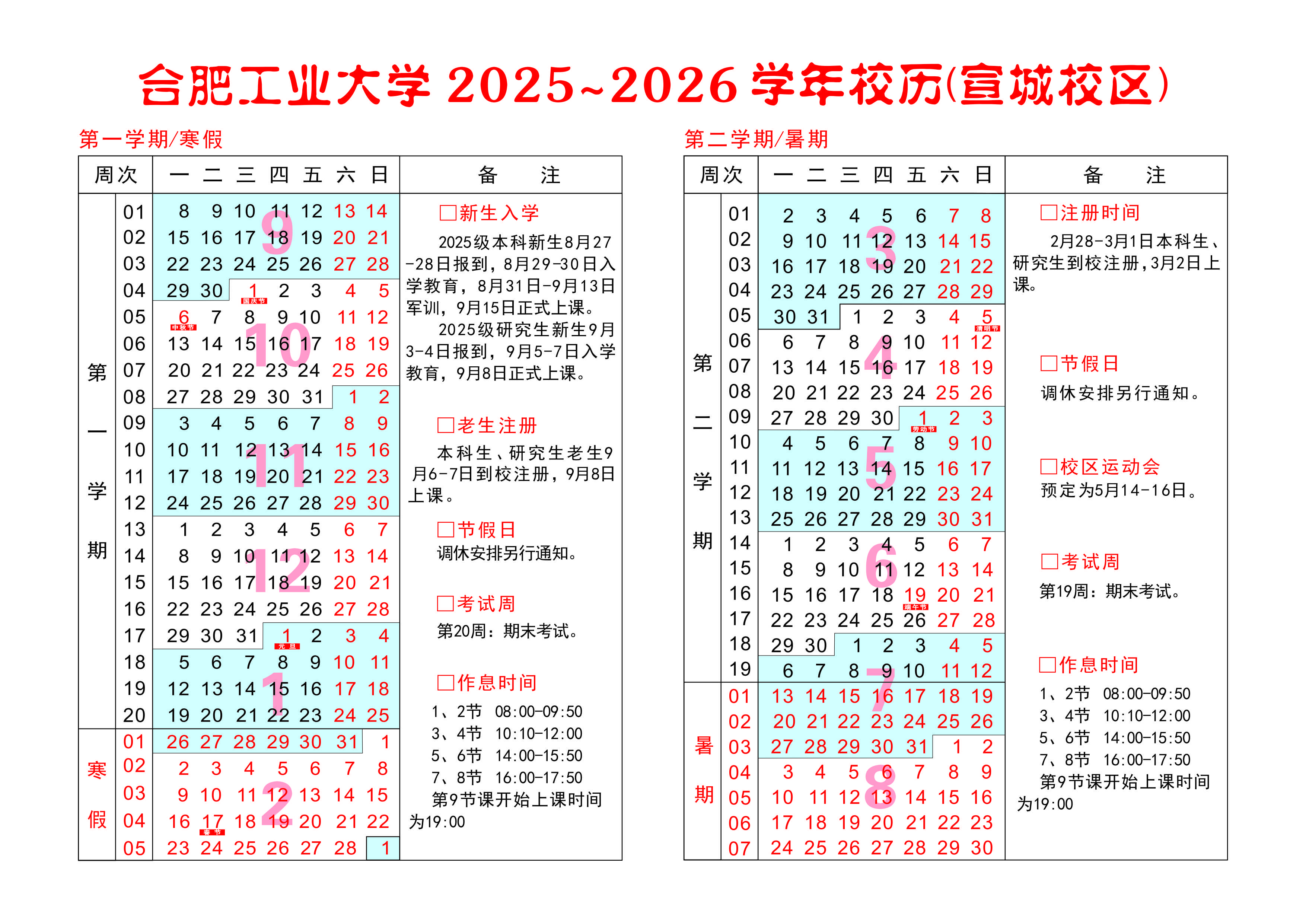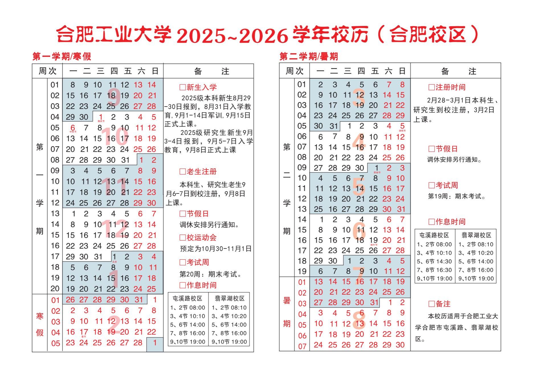 2025-2026学年校历